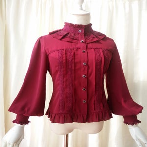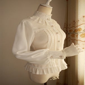 The blouse came with a stand collar by default, but could be made with a peter pan collar instead upon request, at no extra cost. See the last image for the peter pan style.