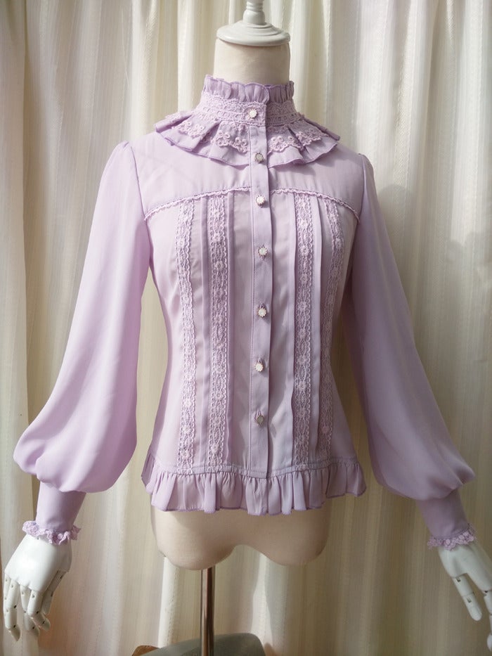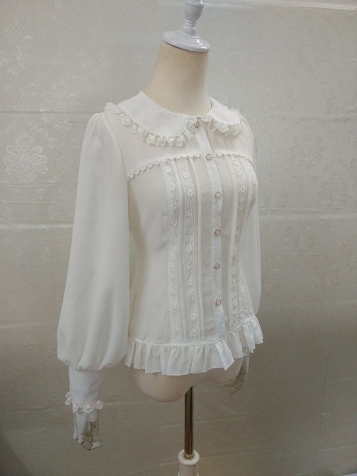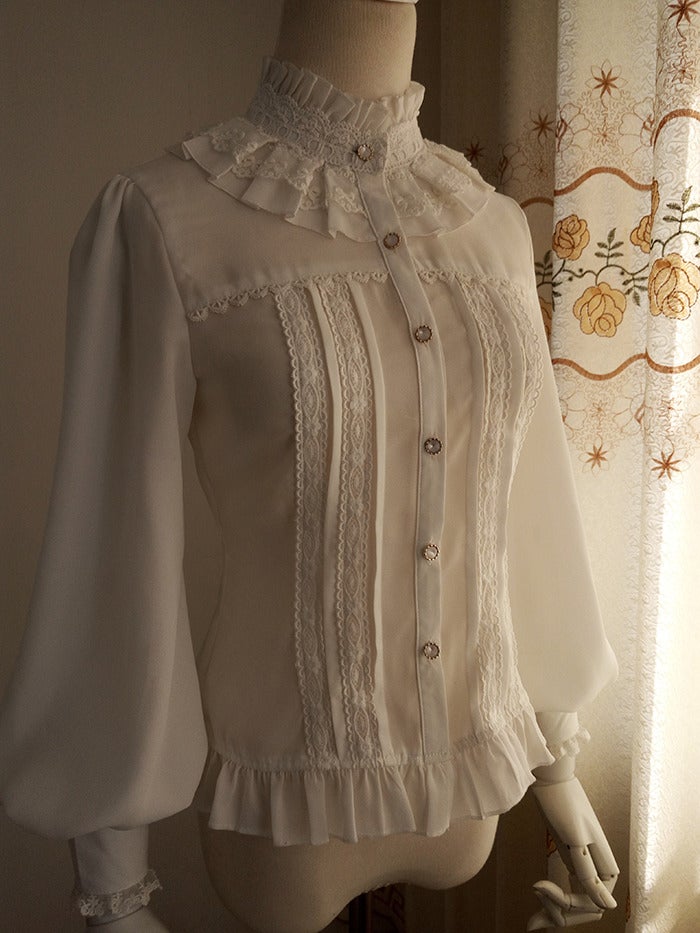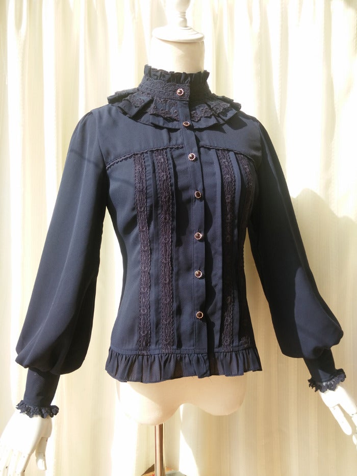 新款洋装复古lolita立领羊腿袖长袖雪纺蕾丝公主百搭衬衫可改翻领