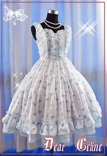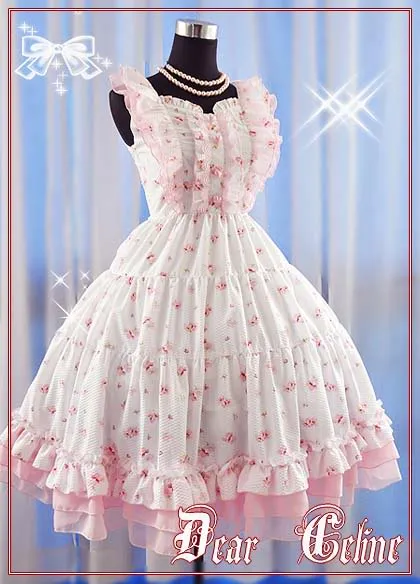 ☆Dear Celine 拂樱 清爽配色荷叶边多节式连身裙-粉,蓝双色入☆