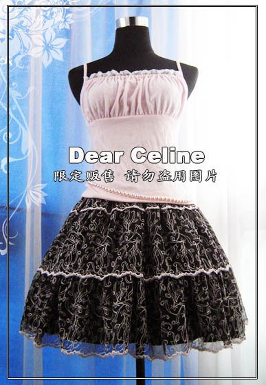 ◆◆Dear Celine粉色提花 精致刺绣蕾丝半裙◆Lolita