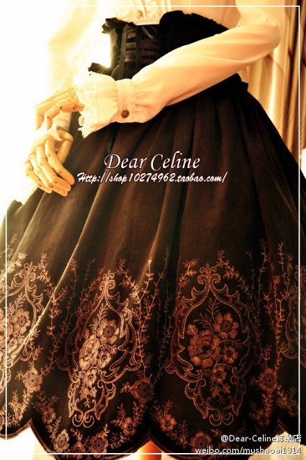 定位刺绣 花瓣下摆 条绒高腰鱼骨半身裙