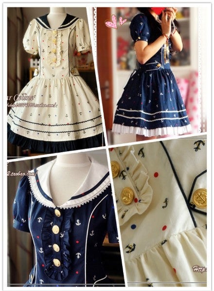 DC 夏季限定 海军领低腰款泡泡袖连衣裙