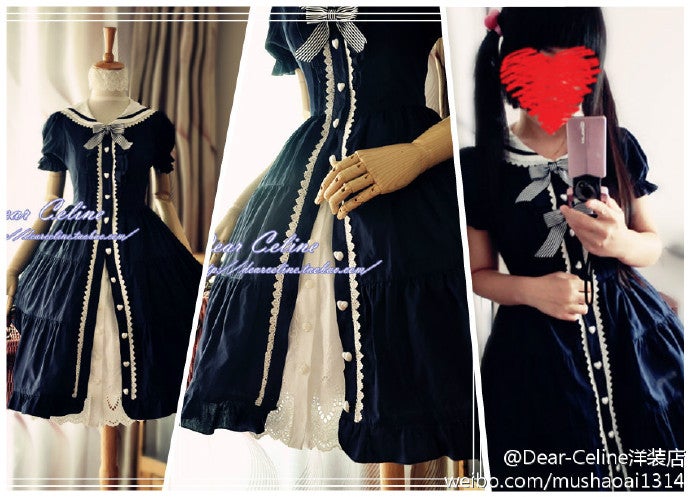 DC 夏日限定 清凉海军风 深蓝色开襟款连身裙
