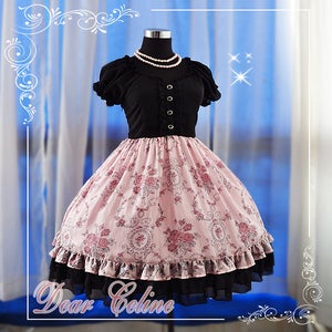 Dear Celine 生如夏花 真丝棉粉色蔷薇拼色短袖连身裙