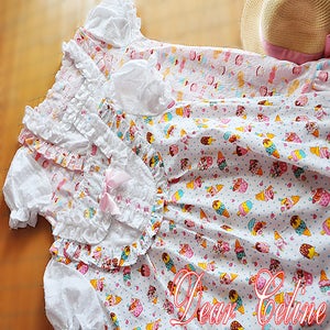 ☆Dear Celine 夏日里的冰淇淋 假两件娃娃款短袖连身裙☆