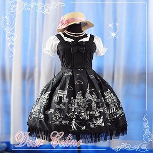 ☆Dear Celine 七月之夏 漫步巴黎 黑色定位花连身裙-SP☆
