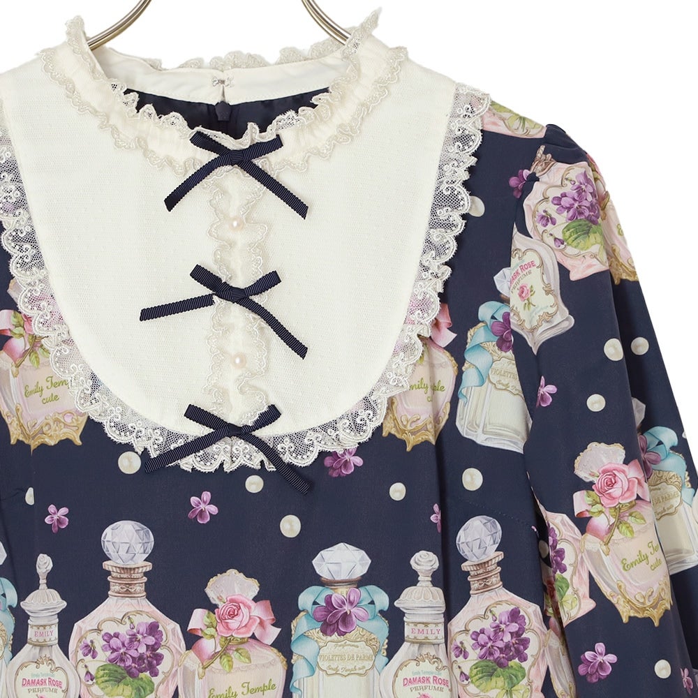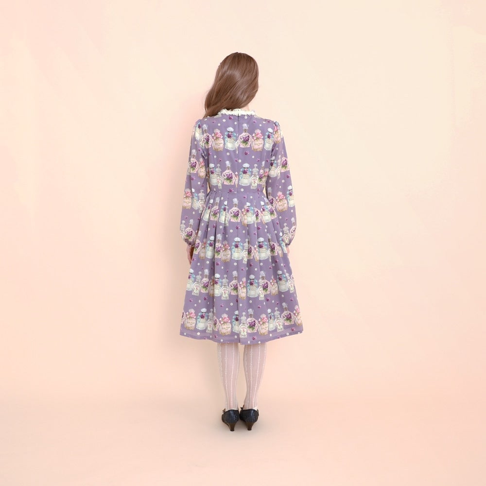 上品なスタンドカラーがクラシカルな印象のワンピース
