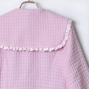 大きなフリルセーラーカラーとチョコレート釦がポイント