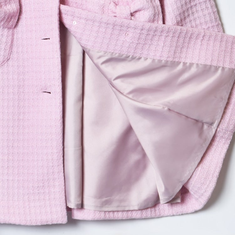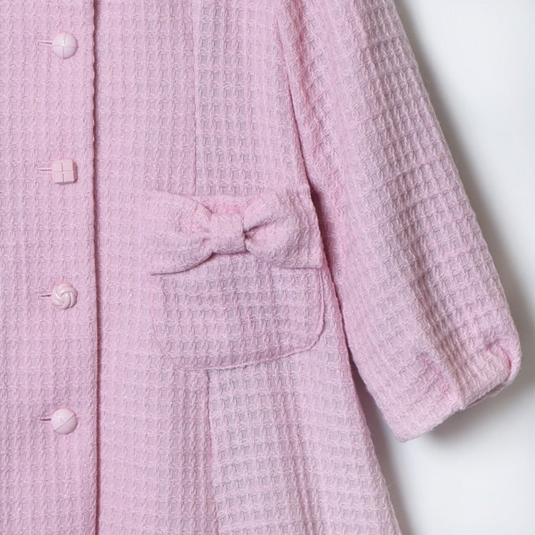 A coat with a sweet finish made with glitter waffle fabric.
