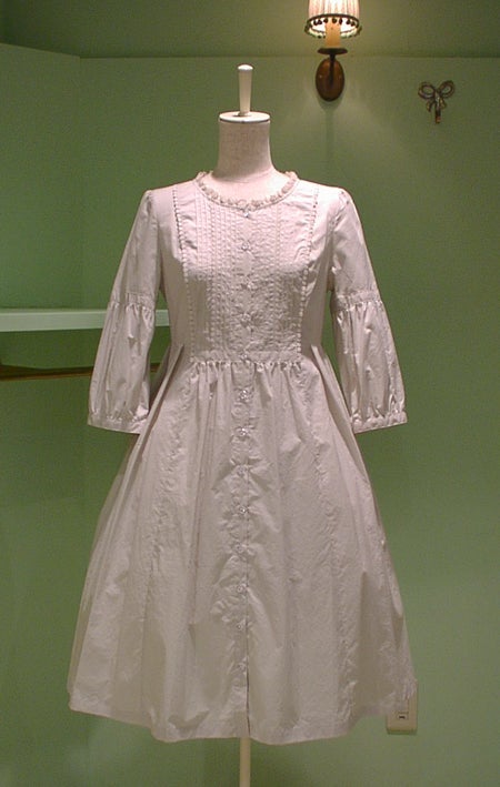 [Brand comment] A pretty three-quarter sleeve dress. The delicate lace on the collar and down the front are hallmarks of the Emily Temple cute brand. The flower and dot lace are especially charming. Refreshing translucent buttons complete a dress that's perfect for spring.