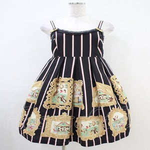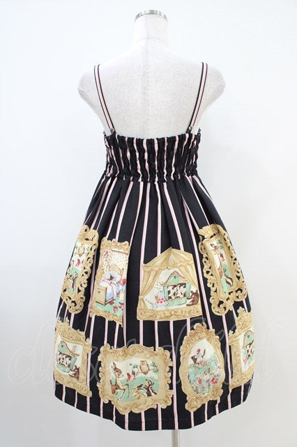 フェアリーテールフレームプリントハイウエストノースリーブワンピース