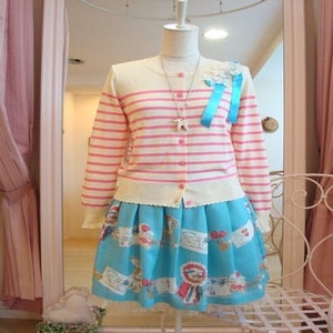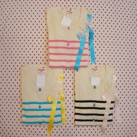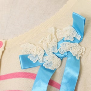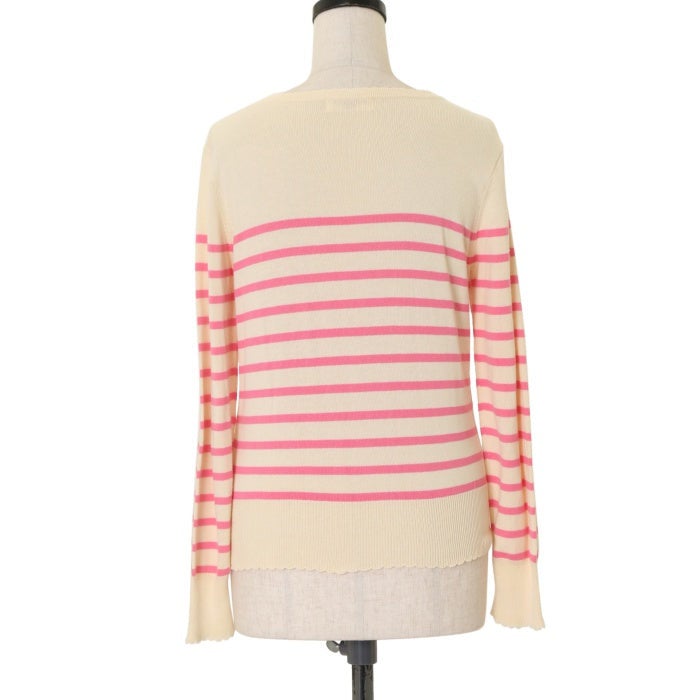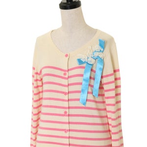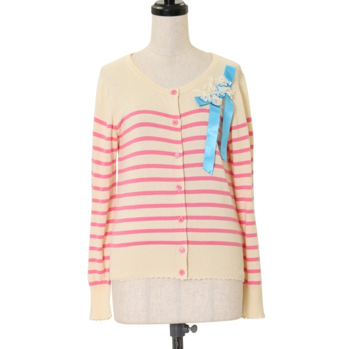 フラワーレースモチーフ付ボーダーニットカーディガン
