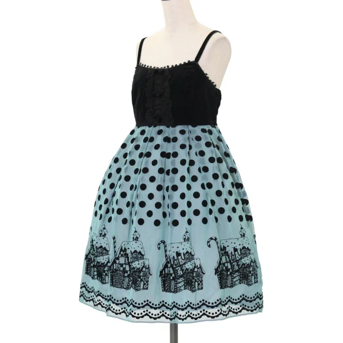 ヘクセンハウスフロッキープリントバイカラーノースリーブワンピース
