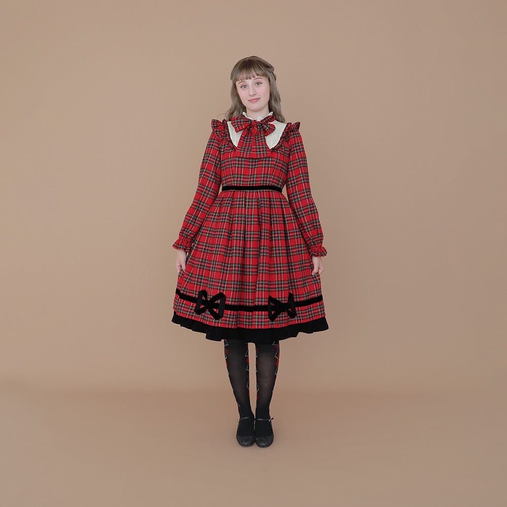 ホリデー気分をぎゅっと結んで、ベルベットのリボンを裾に並べた