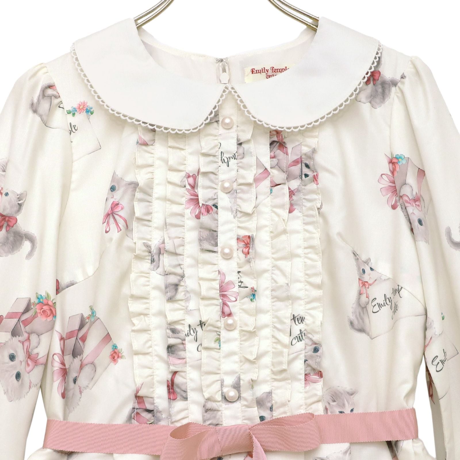 フリルを効かせた切替えと、さりげないパールボタン