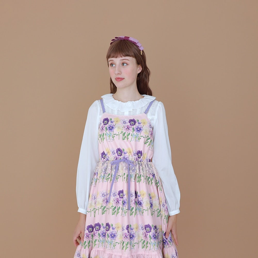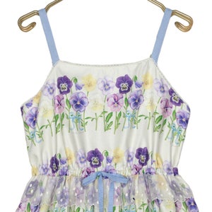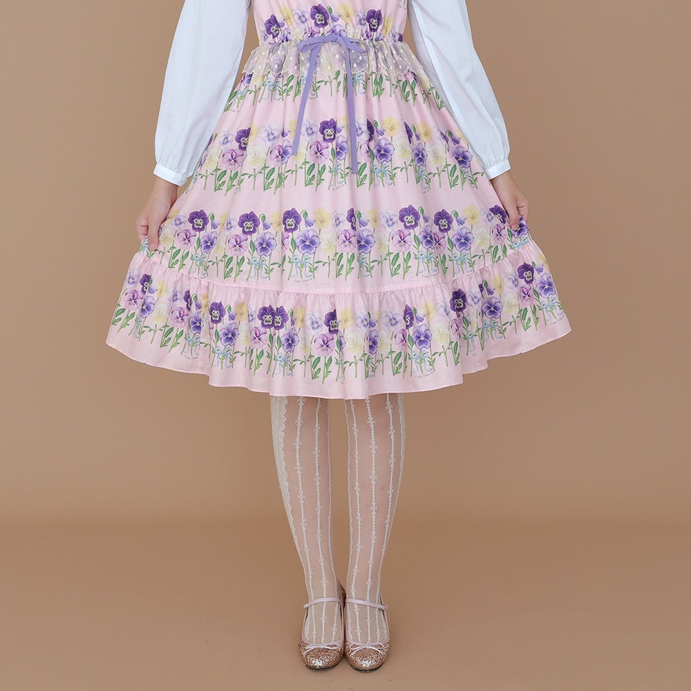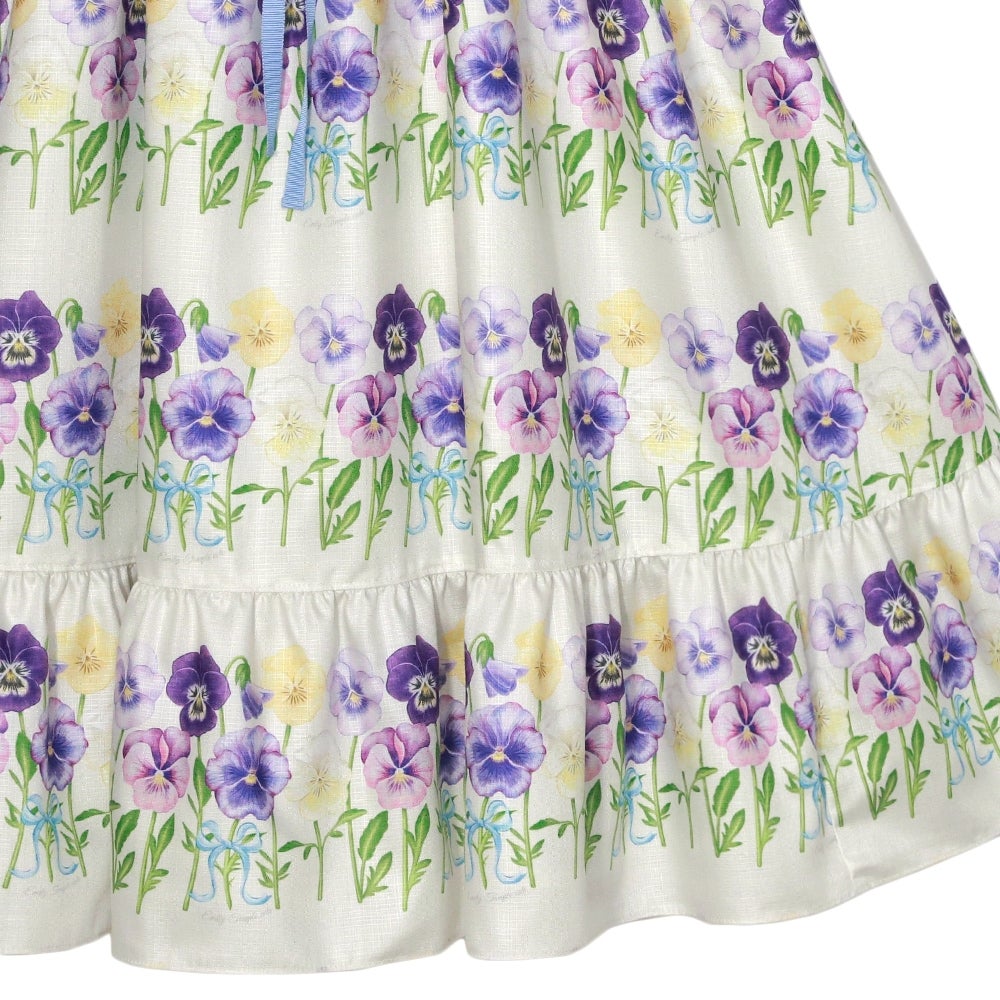 色とりどりのパンジーが咲き誇る、愛らしいガーデンプリント