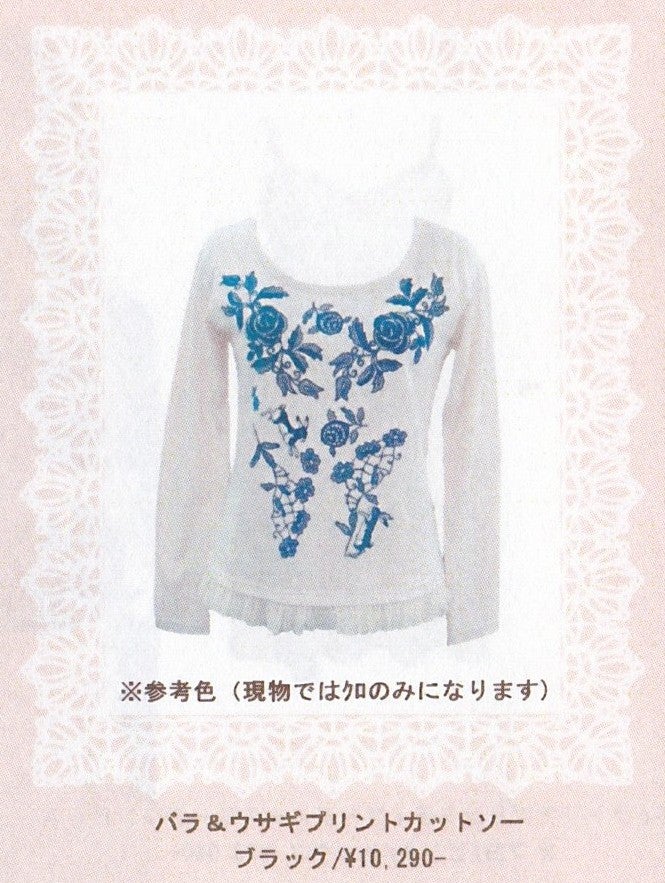 バラ&ウサギプリントカットソー