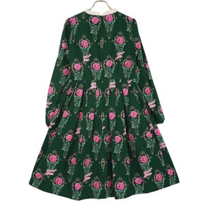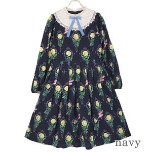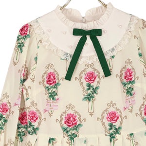 フリルで仕立てたスタンドカラー風の衿元には、取り外せるリボンをプラス