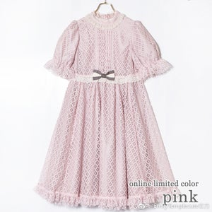 [Brand comment] This dress, with its diamond-patterned lace, evokes the whimsical world of Alice in Wonderland. It features a luxurious use of ruffles, pleats, and lace. A limited-edition pink color is available exclusively in our online shop. The sophisticated, yet charming color makes it a perfect item for a grown-up, feminine look.