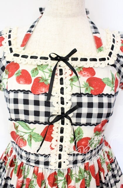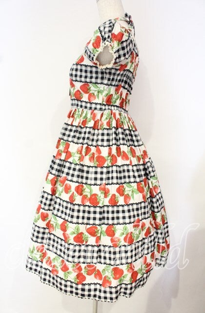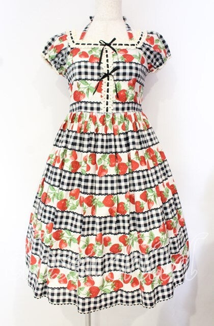 ギンガムいちごプリントワンピース