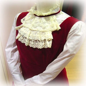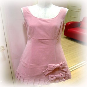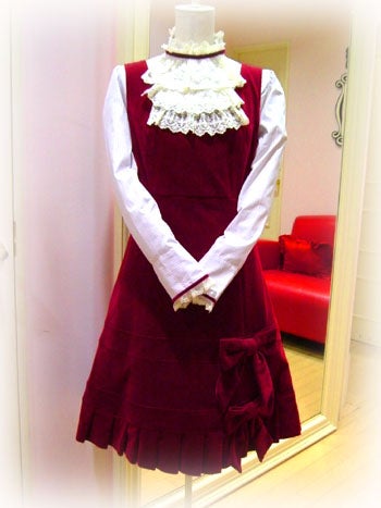 [Design notes] Has two large self fabric bows on the left side of the skirt and pleated self-fabric hem trim.