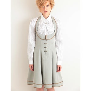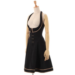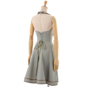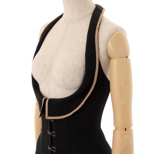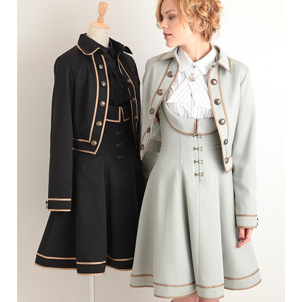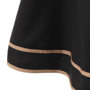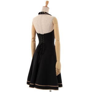 Colors: BLK SAND Material: Outer: 100% polyester Lining: 100% cotton Tape: 100% polyester Ribbon: 100% polyester Metal boning Metal parts Resin button Skirt length: 58cm