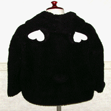 男の子っぽい格好でも着れそうなジップアップのブルゾンをボアでつくりました。裏地にネルを使っているので、冷たいポリエステルの裏地と違って、とても暖かく、防寒性に優れています。ハート型の耳とシッポがキュートです♪