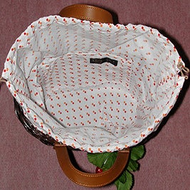 可愛い籐のかごバックで新作が出来ました。持ち手は合皮で出来ていて、作りもしっかりしています。開閉は巾着式で中身が飛び出ず、荷物も充分入ります。