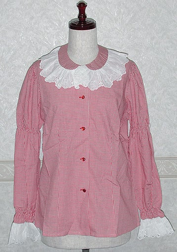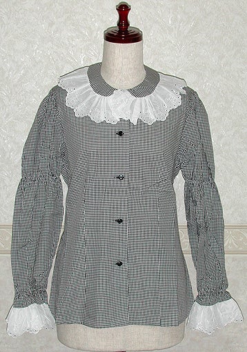 [Brand comment] This is a cute blouse made with cute rabbit lace. The very fine gingham, about 1mm square, and the puff sleeves are also cute. The size is a little loose, so it can be worn by people with larger breasts.