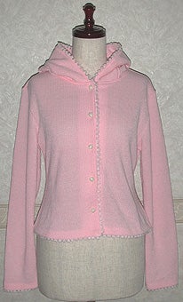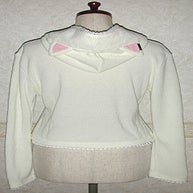 またまたのざのわがままで、大人気のネコフードがカーデに なりましたっ!!しっかりした厚みのあるニット生地に、くるくるとループ状のフリンジがとっても可愛いレースを縁という縁すべてにつけました♪引っ掛けないように注意してくださいねっ!!カーデは一枚あると絶対重宝しますよ~♪
