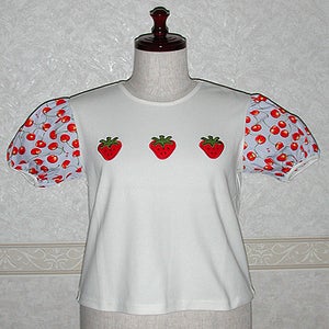 [Brand comment] This cutsew features a cute appliqué of three strawberries lined up, paired with original cherry-patterned puff sleeves. Due to limited stock and a lack of colors, it's available at a clearance price! Order now!