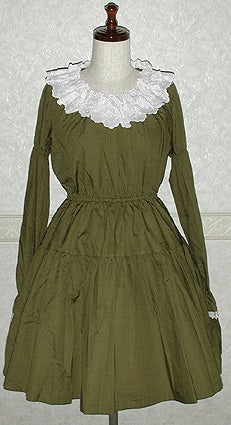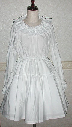 [Brand comment] This dress has voluminous lace around the collar. The skirt is also two-tiered and fluffy. When you wear it, the puff sleeves are emphasized, making it even cuter.
