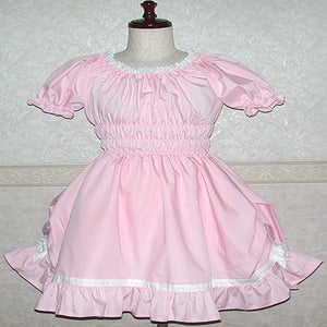 [Brand comment] Introducing a cute shirred dress. Because it's shirred, there's room in the front and back. It has drapes and decorative ribbons on both sides, which makes it really lovely. It's made of TC broadcloth, which is firmer and shinier than broadcloth, and it makes the lines look really beautiful.