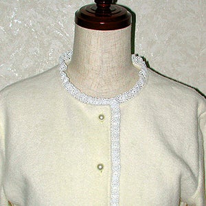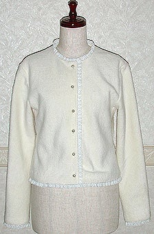 [Brand comment] I made a very warm cardigan using Italian fleece that is resistant to pilling. The stretch lace on all edges and the pearl-like ball buttons go well together and are very cute.