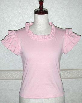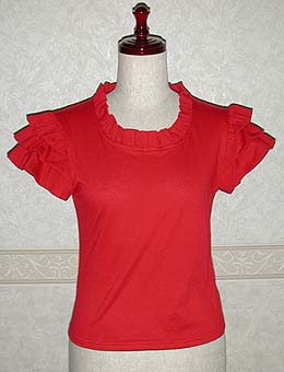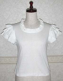 ふりふりの袖がとても涼し気で可愛いTシャツが出来ました。 シンプルでキュートなので、フルーツプリントのスカートなどと好相性です。是非、持っていたい一枚ですね!!
