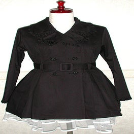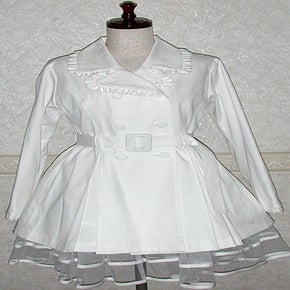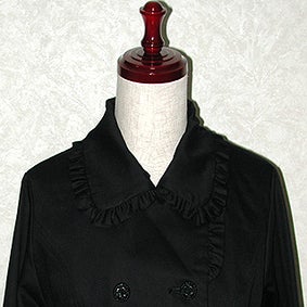 [Design notes] The bottom of the collar that folds over can be buttoned up underneath the main collar. Fully lined. Pockets are on both sides. The ruffles are made of the same material as the main body. The buttons have a heart motif and are the same color as the body for each colorway.