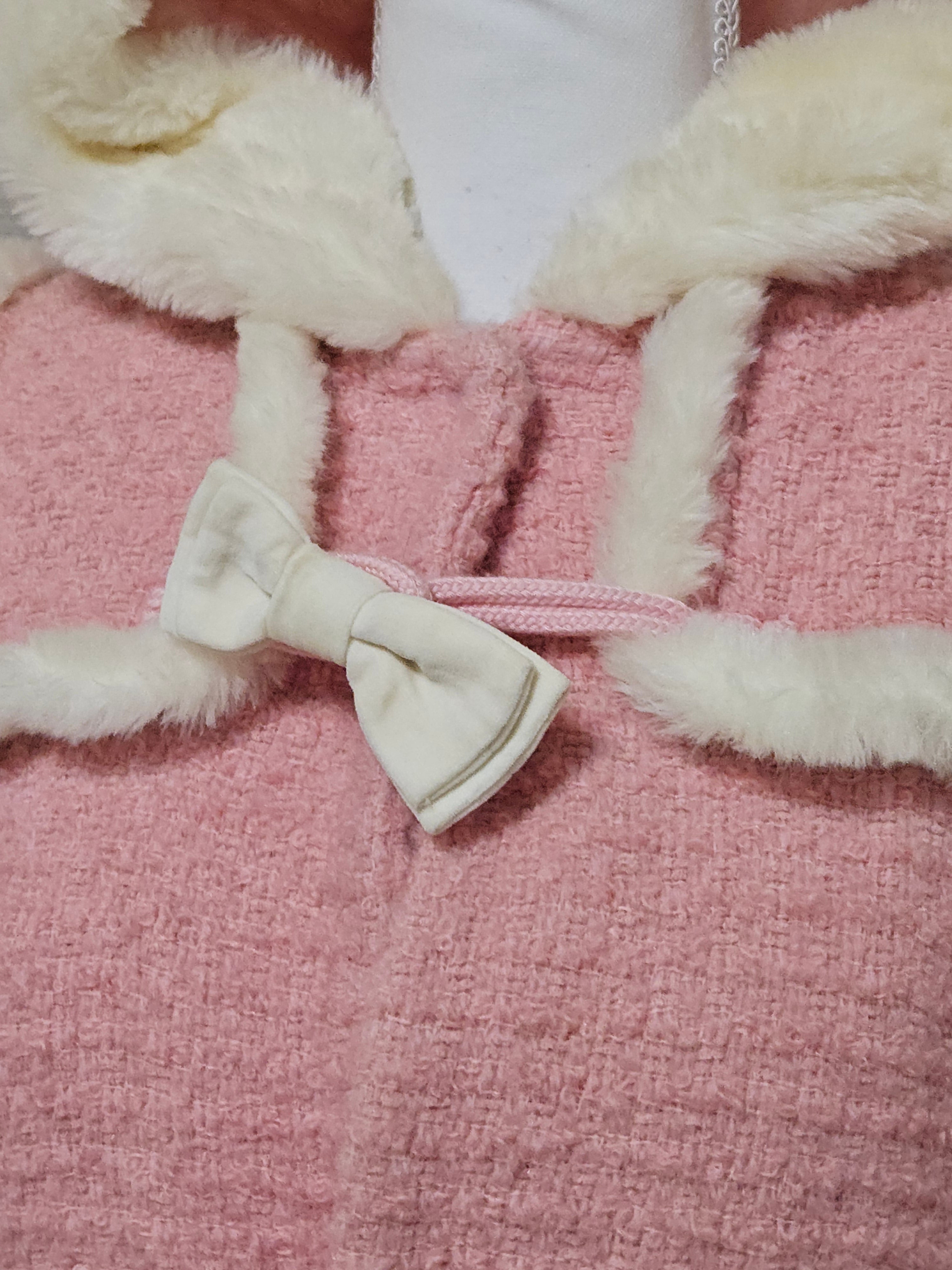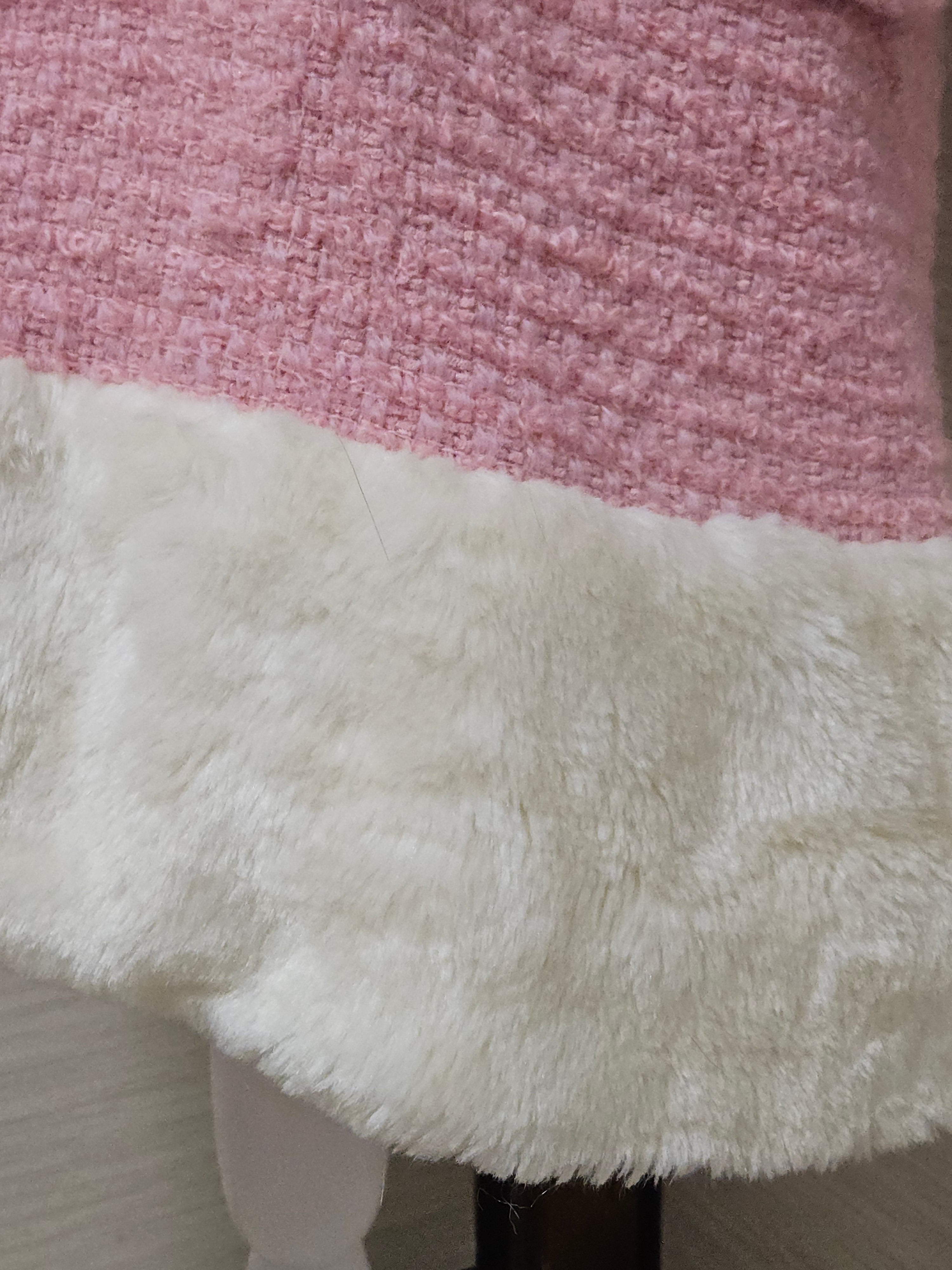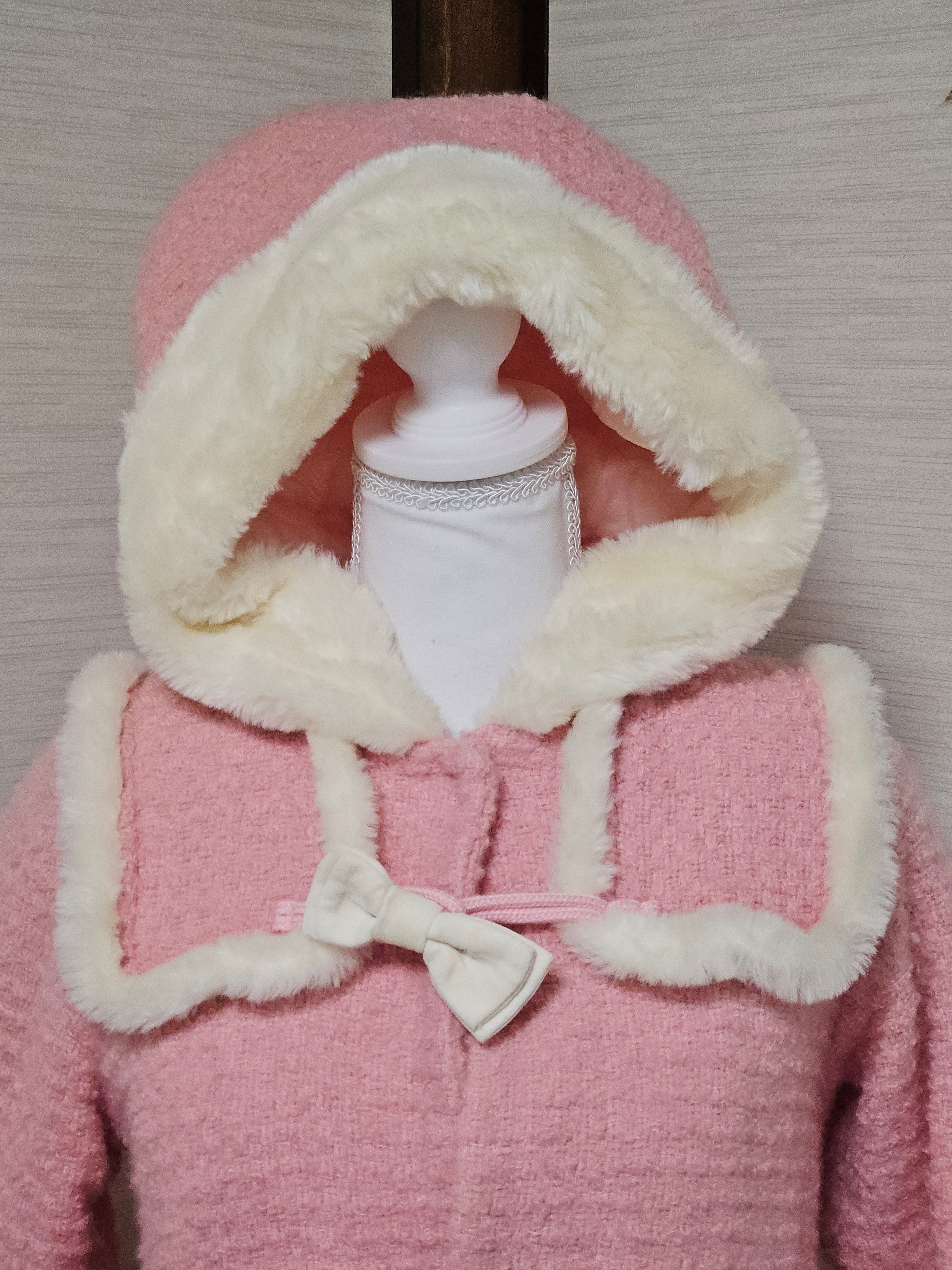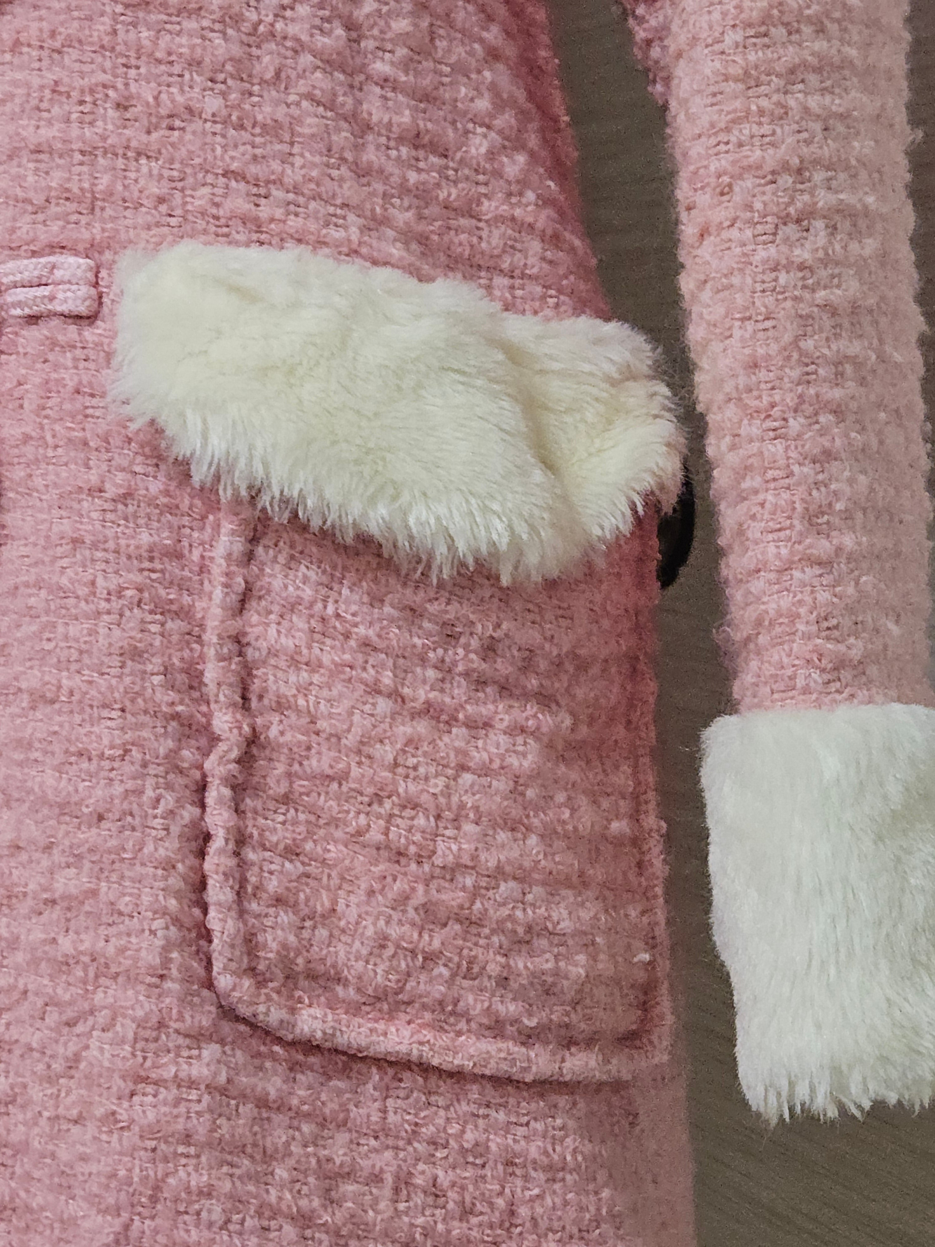 I made a cute duffle coat out of roving. The fabric is made of thick yarn, woven loosely for a fluffy texture. The coat also has a fluffy quilted lining, so it's quite warm. The images don't quite convey the texture of the fabric, but it's super cute in colors like pink, and fur trim suits it perfectly.