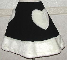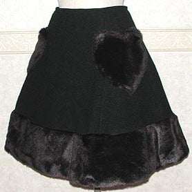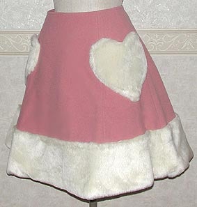 肌触りのいいパイルモッサにファーが付いた、とっても可愛いスカートが出来ました。可愛いハート型のポケットもキュートです♪ファーは冬だけのお楽しみですので、堪能して下さいね!!