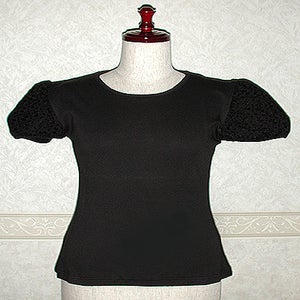 [Brand comment] I wanted a simple smooth puff T-shirt, but it felt a bit lonely on its own, so I added over-lace to the puff sleeves. The lace is very cool and seems like it would go well with any outfit.