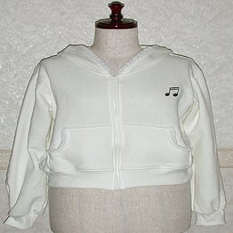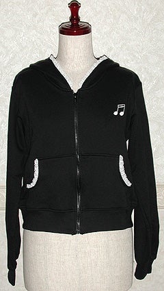 左胸の音符の刺繍とフード口&ポケット口にストレッチレースをあしらったジップアップのパーカーの登場です。人気の【482002 フリルフードパーカー】をさらに可愛くキュートにパワーアップ!!ボーイッシュな物がお好きな方は【482002 フリルフードパーカー】、ガーリッシュな物がお好きな方はこちらを是非どうぞ♪