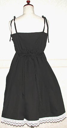 [Design notes] The shoulder straps can be tied to any length. The top of the back is elasticized. The hem has a cherry pattern lace. Unlined.