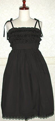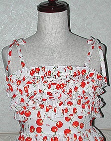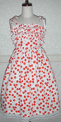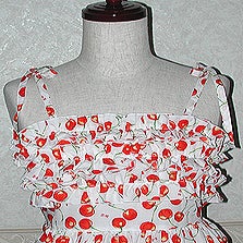[Brand comment] Our classic three-tiered ruffle jumper skirt is back for summer in our original cherry pattern! We've also made the lace to match the pattern with cherry lace! It's super cute whether you wear it alone as a sundress or pair it with a blouse.