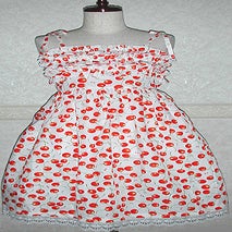 定番の3段フリルのジャンパースカートが夏物として、オリジナルチェリー柄で再登場です!! レースも柄にあわせてチェリー柄レースでお作りしました!! 1枚でサンドレスとして着ても、ブラウスとあわせてもとっても可愛いですよ♪♪