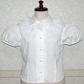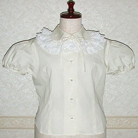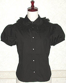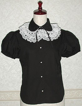 [Brand comment] Introducing a blouse perfect for summer featuring popular heart-patterned lace! Attach the included spare collar for a gorgeous two-tiered lace collar, or remove it for a simple look. The heart-shaped buttons match the lace, making it super cute!