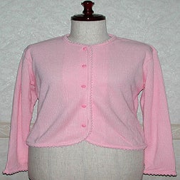 しっかりした厚みのある暖かいニット素材、人気のバルキー畦ニットでまたまたカーデをつくりました。まあるいポンポンが並んだ、とっても可愛いレースを縁という縁すべてにつけました♪シンプルで、あわせやすく、インナーやボトムの可愛らしさを邪魔しないカーディガンです。