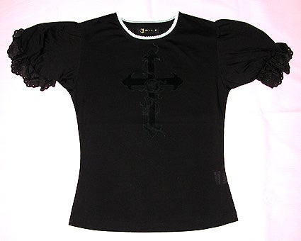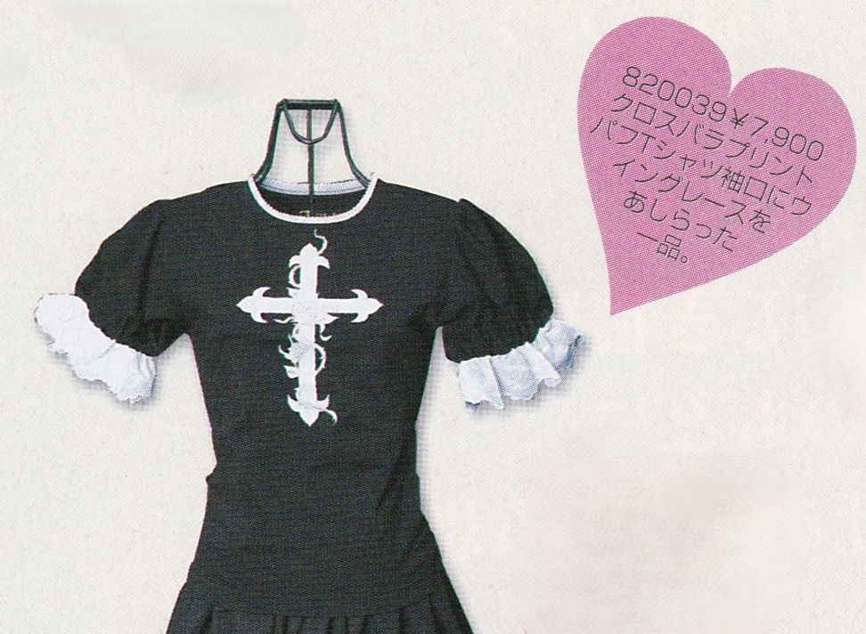 Heart E catalogue- “I made a very cute short sleeved tshirt with cross rose print. The cross-wing lace on the cuffs are also cute.”