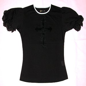 クロス薔薇プリントレース付パフTシャツ