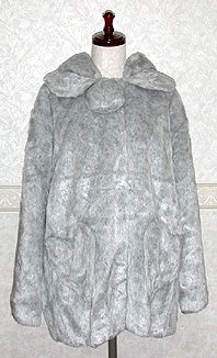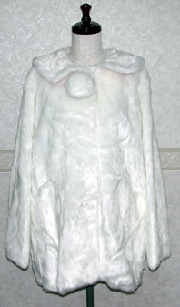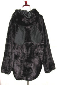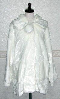 最高級のフェイクファーをたっぷり使い、ふわふわのコートを作りました。耳つきのフードもしっぽも付けました。色もとてもカラフルです!! フードは取外し出来ますが、しっぽは外せません・・・