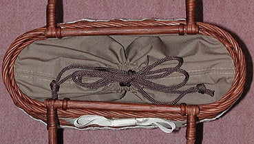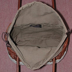 籐のかごバックで新作が出来ました。持ち手も全て籐で出来ていて、作りもしっかりしています。開閉は巾着式で中身が飛び出ず、荷物も充分入ります。幅広で手の込んだ柄のレースと、ワンポイントのリボンがとっても可愛いです。夏のお出かけのおともにいかがですか?