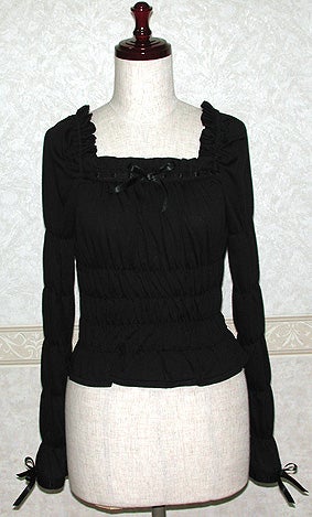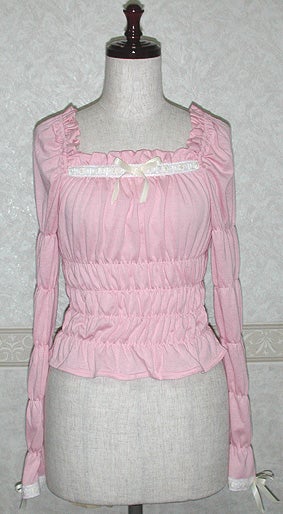 [Brand comment] This is Noza's (designer) top pick for this fall! The body and sleeves are shirred for a soft, fluffy look, and are topped with a cross-patterned ladder lace. It's super cute, but depending on the color, it's not too sweet, so it's a top that adult Lolita girls will definitely want to wear!